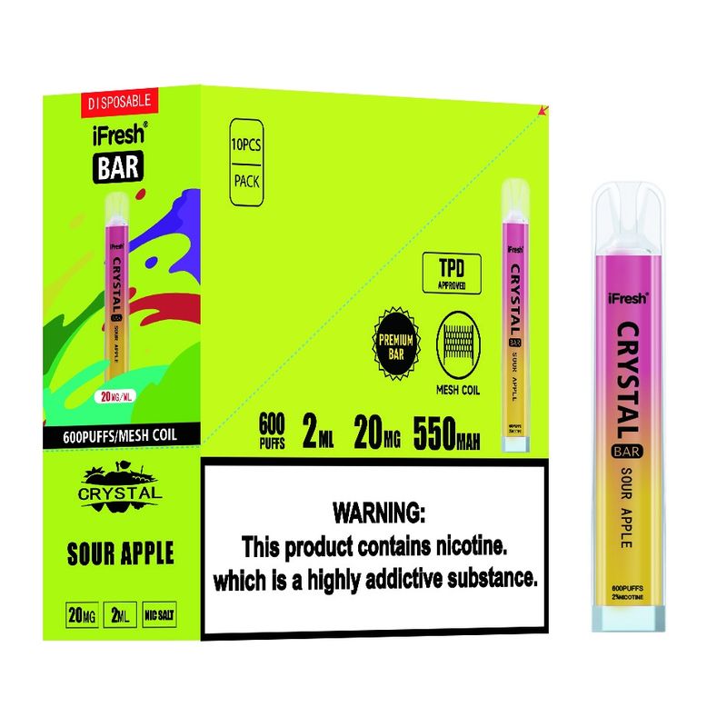 iFresh TPD Vape jest produktem zgodnym z przepisami dotyczącymi wyrobów tytoniowych, który jest zgodny z przepisami dotyczącymi wyrobów tytoniowych.6V i akumulator o pojemności 550mAhMa wymiary 104x 16 mm i jest dostępny w 10 różnych kolorach.Zdobądź iFresh TPD Vape już dziś i ciesz się bezpiecznym i regulowanym doświadczeniem!